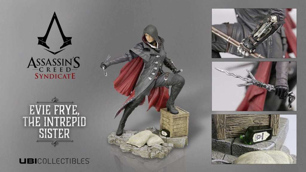UbiCollectibles präsentiert zwei unglaublich detaillierte Assassin’s Creed-Figuren, die ab Oktober 2015 im Handel erhältlich sein werden. Jacob Frye, The Impetuous Brother, präsentiert Jacob in einer bedrohlichen Pose in den Straßen von London. Er ist mit einem äußerst detailgenauen Assassinen-Handschuh und dem Stockschwert ausgerüstet. Evie Frye, The Intrepid Sister, ist die feurige und bestimmende Schwester von Jacob. Beide Figuren kommen mit einer besonderen Lithografie. Zusammen ergeben die beiden hochwertigen Figuren das Diorama „The Wise And Wild Twins“.